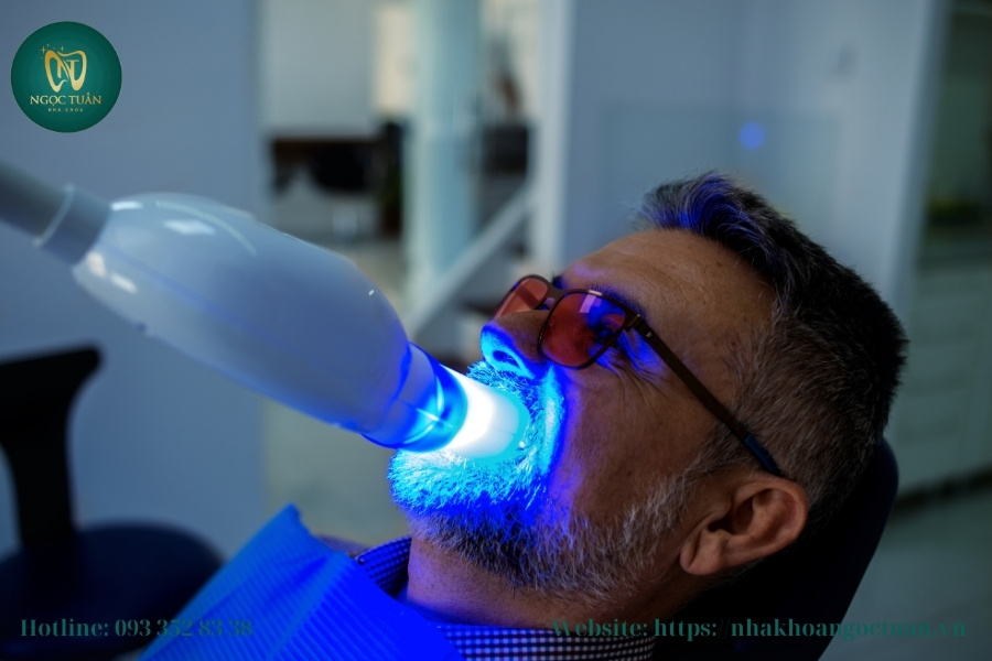 Sau khi gel tẩy trắng được bôi đều lên răng, bác sĩ sẽ sử dụng đèn laser hoặc đèn LED để kích hoạt và đẩy nhanh quá trình tẩy trắng. Ánh sáng từ các thiết bị này giúp tăng tốc phản ứng hóa học của chất tẩy trắng, làm răng sáng lên nhanh chóng mà không làm tổn thương men răng.