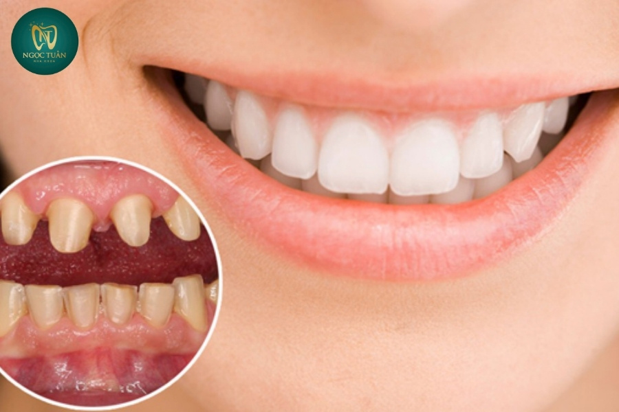 - Những vấn đề như răng sứt mẻ, răng sâu hoặc răng ố vàng do yếu tố di truyền, thực phẩm hoặc thuốc kháng sinh thường không thể khắc phục hoàn toàn bằng các phương pháp như tẩy trắng hay trám răng.