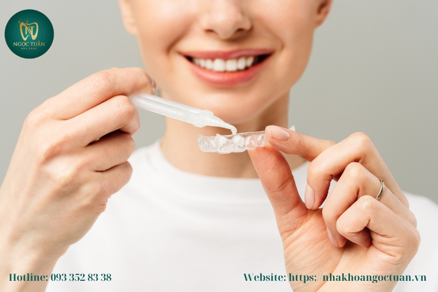 Máng tẩy trắng răng với gel: Phương pháp này sử dụng máng nhựa mềm chứa gel tẩy trắng, giúp gel tiếp xúc đều trên bề mặt răng. Đây là phương pháp có hiệu quả cao hơn so với miếng dán, nhưng cần kiên trì thực hiện đúng thời gian khuyến nghị.