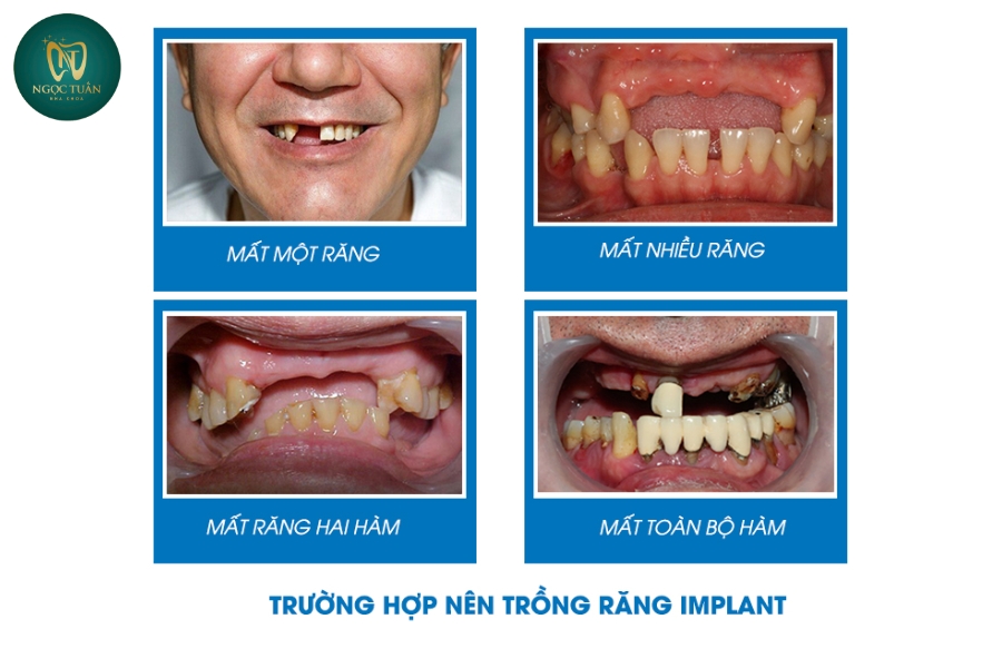 Trồng răng Implant là giải pháp tối ưu dành cho những người gặp phải tình trạng mất răng, bất kể nguyên nhân hay mức độ nghiêm trọng. Dưới đây là những trường hợp phổ biến mà bác sĩ khuyến nghị nên áp dụng phương pháp này.