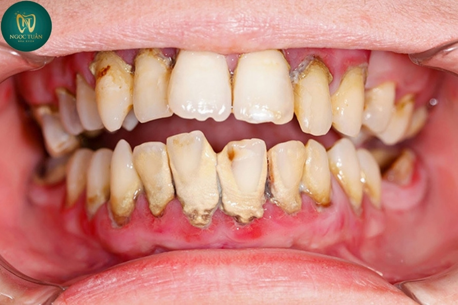 Ở giai đoạn viêm nha chu nặng, túi nha chu có thể tích tụ vi khuẩn, mủ và mô hoại tử, gây viêm nhiễm nghiêm trọng. Những túi mủ này có thể khiến nướu sưng to, đau nhức, thậm chí có thể vỡ ra, tạo điều kiện cho vi khuẩn lây lan sang các khu vực khác. Đây là dấu hiệu cảnh báo viêm nha chu đã chuyển sang giai đoạn nguy hiểm, cần điều trị ngay lập tức.