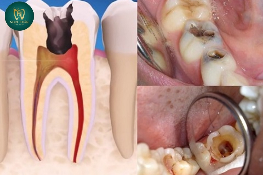 Viêm tủy răng nếu không được điều trị sớm có thể dẫn đến hoại tử tủy, tức là mô tủy bên trong răng bị chết. Khi tủy răng không còn hoạt động, vi khuẩn có thể phát triển mạnh mẽ hơn, phá hủy cấu trúc răng từ bên trong. Tình trạng này làm răng trở nên giòn, dễ gãy, mất khả năng bảo vệ và có thể bị nhiễm trùng lan rộng.